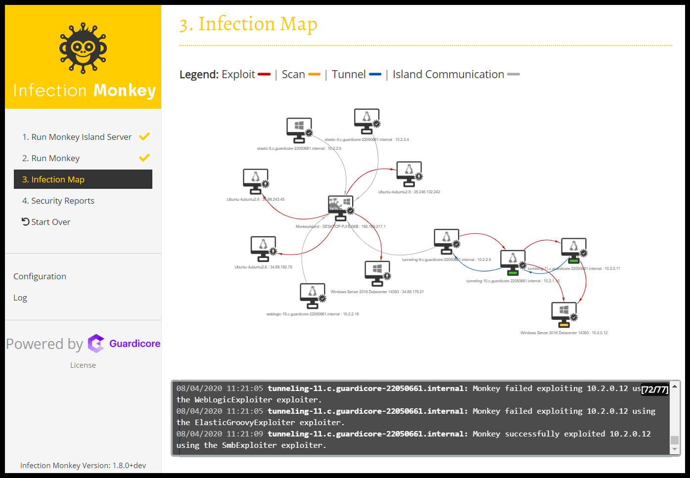 The Infection Monkey is an open source security tool for testing a data center’s resiliency to perimeter breaches and internal server infection. Infection Monkey uses various methods to self propagate across a data center and reports success to a centralized Monkey Island server.